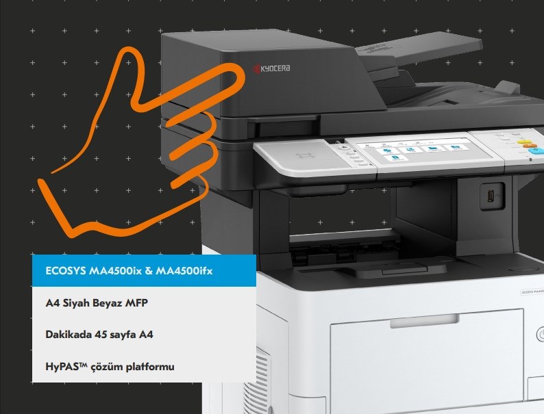 Kyocera ECOSYS MA4500ix, ilk baskıdan son baskıya kadar kaliteli baskıyı garanti eden kompakt ve güçlü A4 yazıcı. Üst düzey güvenlik özellikleri ve düşük enerji tüketimi işlevleriyle donatılan bu MFP, küçük ve orta ölçekli çalışma alanları için mükemmel bir seçimdir.