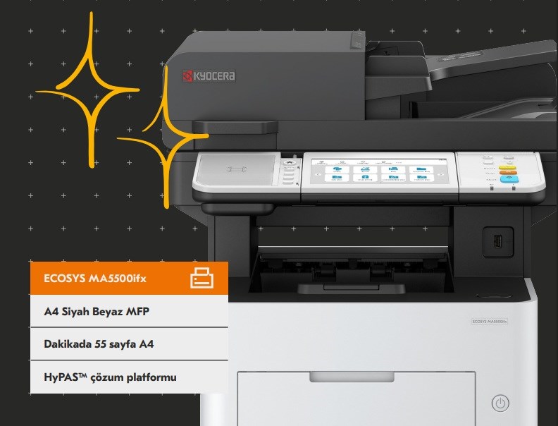 Kyocera ECOSYS MA5500ifx, üstün kalite ve güvenilirlik bir arada. Bu tek renkli çok fonksiyonlu yazıcı, verilerinizi güvende tutarken, kompakt boyutu ve enerji verimliliği onu küçük ve orta ölçekli çalışma grupları için mükemmel bir seçim haline getiriyor.