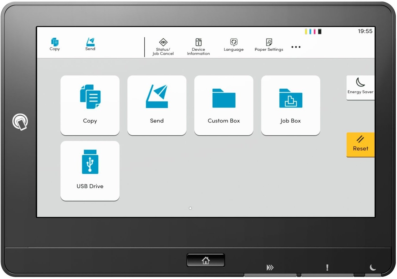 Standart Arabirim USB 3.0 (Super-Speed USB), 4 x USB Host arayüzü, Gigabit Ethernet (10BaseT/100BaseTX/1000BaseT, IPv6,IPv4, IPSec, 802.3az desteği), opsiyonel Wi-Fi (IEEE 802.11a/b/ g/n/ac), opsiyonel dahili print server veya opsiyonel faks sistemi için 2 eKUIO slot, opsiyonel Wireless LAN için slot, opsiyonel SD Kart için slot, NFC etiketi
